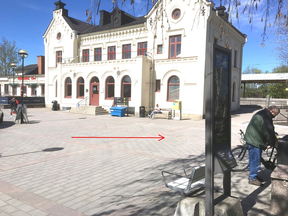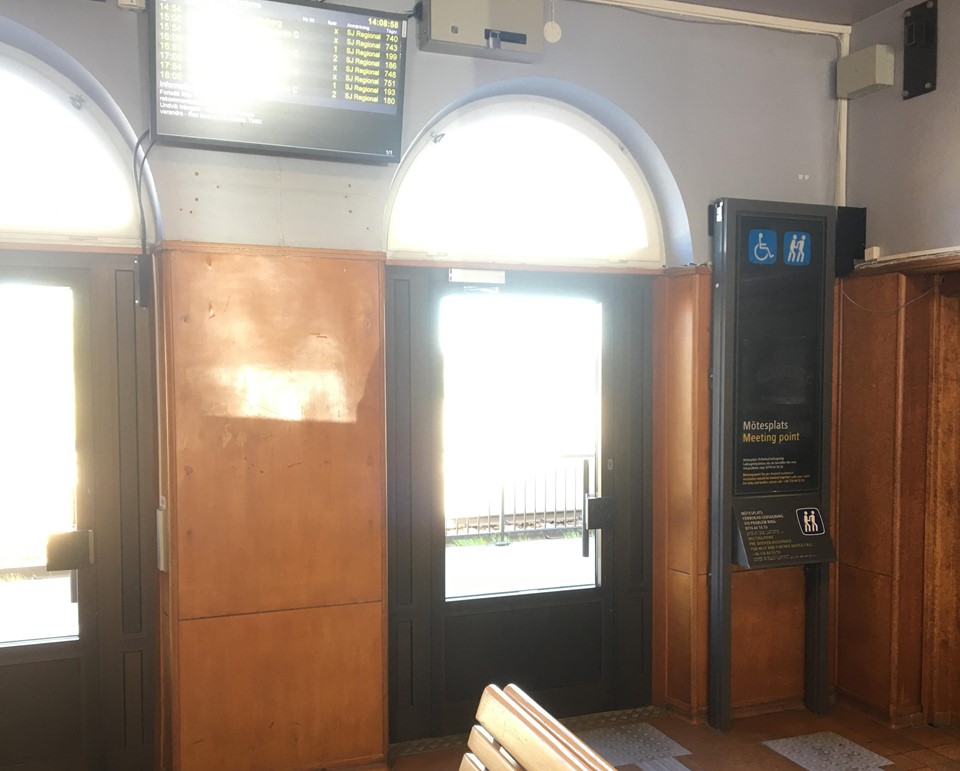 Inne. I väntsal till höger om dörr ut mot plattformen.