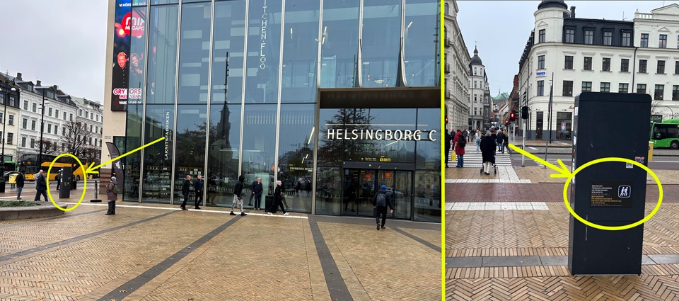 Ute. Vid entrén på Kungstorget nära Pressbyrån, skylten sitter på Skånetrafikens infotavla.