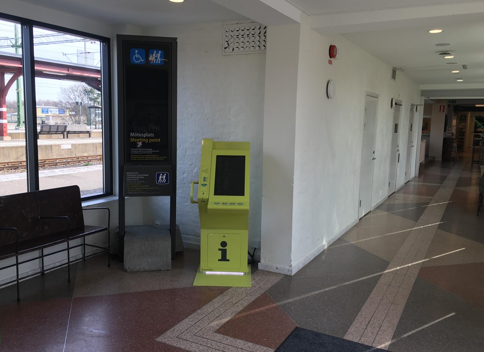 Inne. I korridor mellan gamla stationshuset och nya väntsalen.