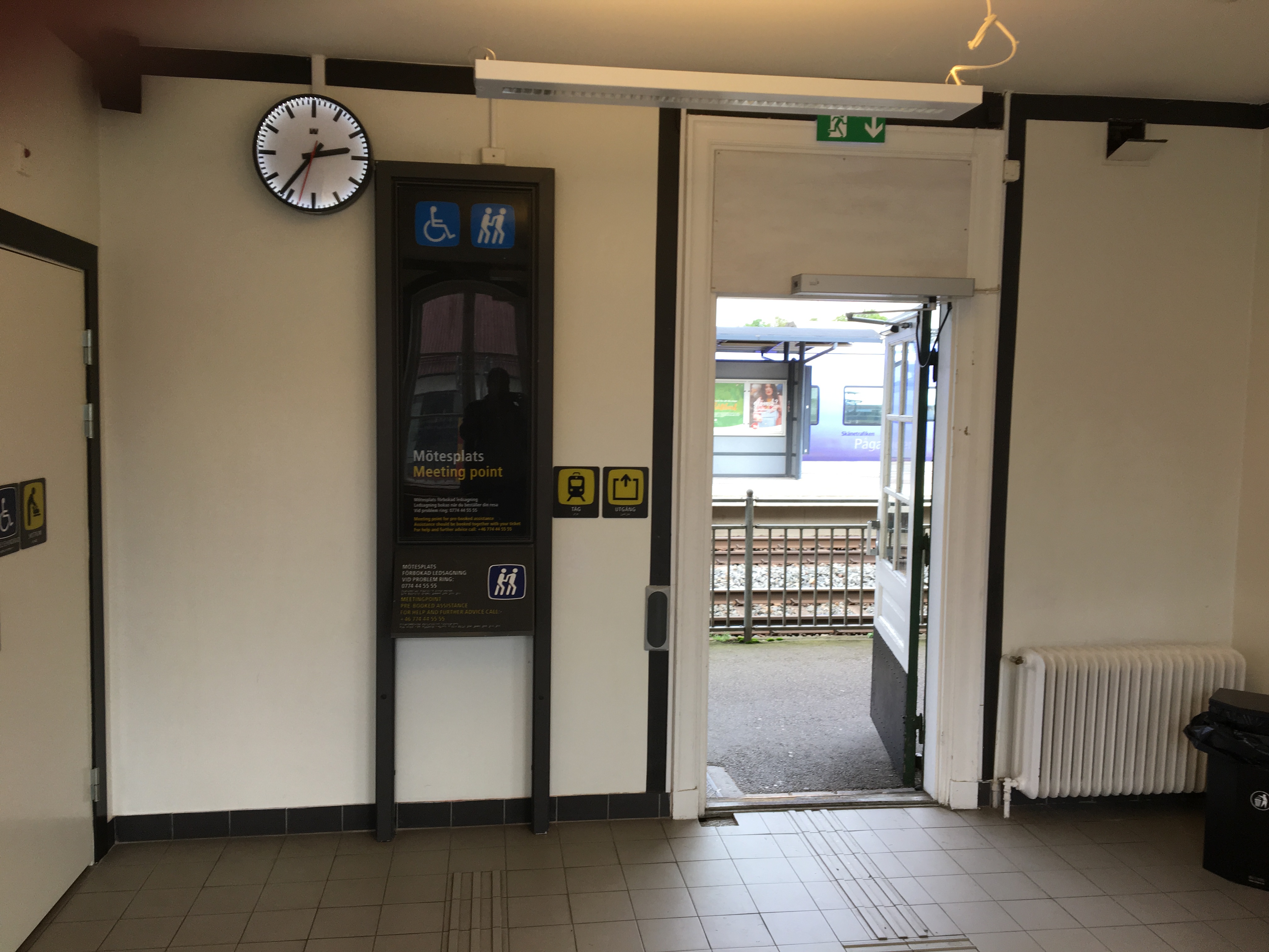 Höör station Uppdaterades senast: 8 juli 2021 Inne. I väntsalen, till vänster om utgången ut mot spåren. Foto: Nïklas Henriksson Samtliga mötesplatser
