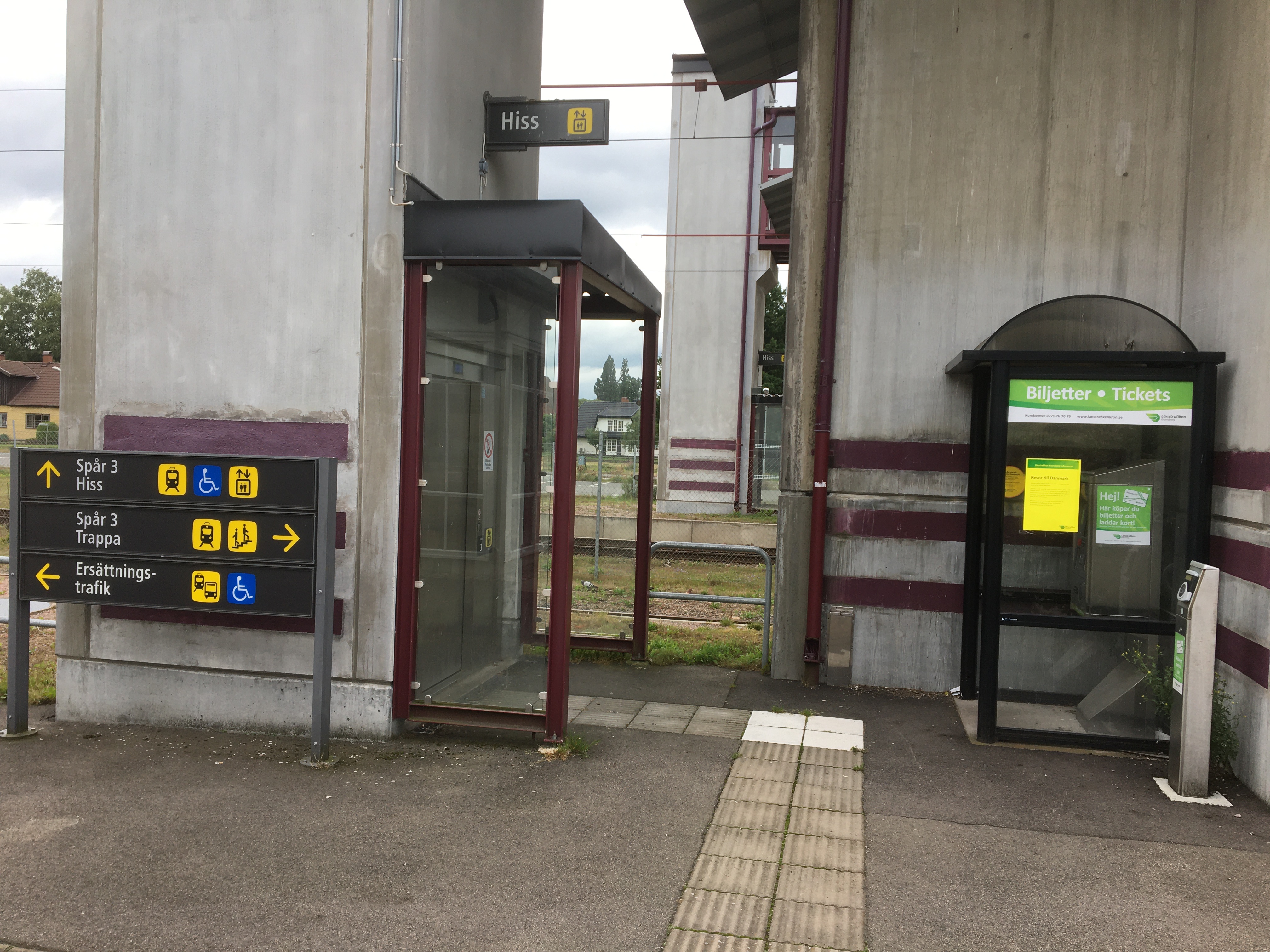 Markaryd station Uppdaterades senast: 8 juli 2021 Ute. Vid hissen nära spår 2 och gamla stationshuset (skylt saknas). Foto: Nïklas Henriksson Samtliga mötesplatser
