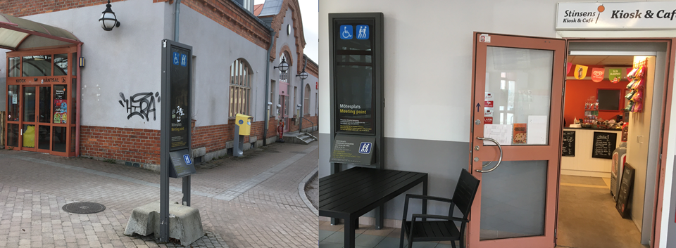 Inne. I väntsal till vänster om entrén vid kiosken.