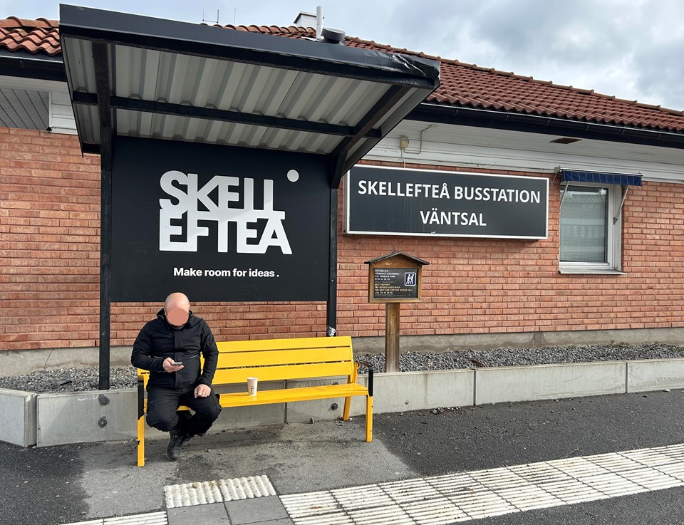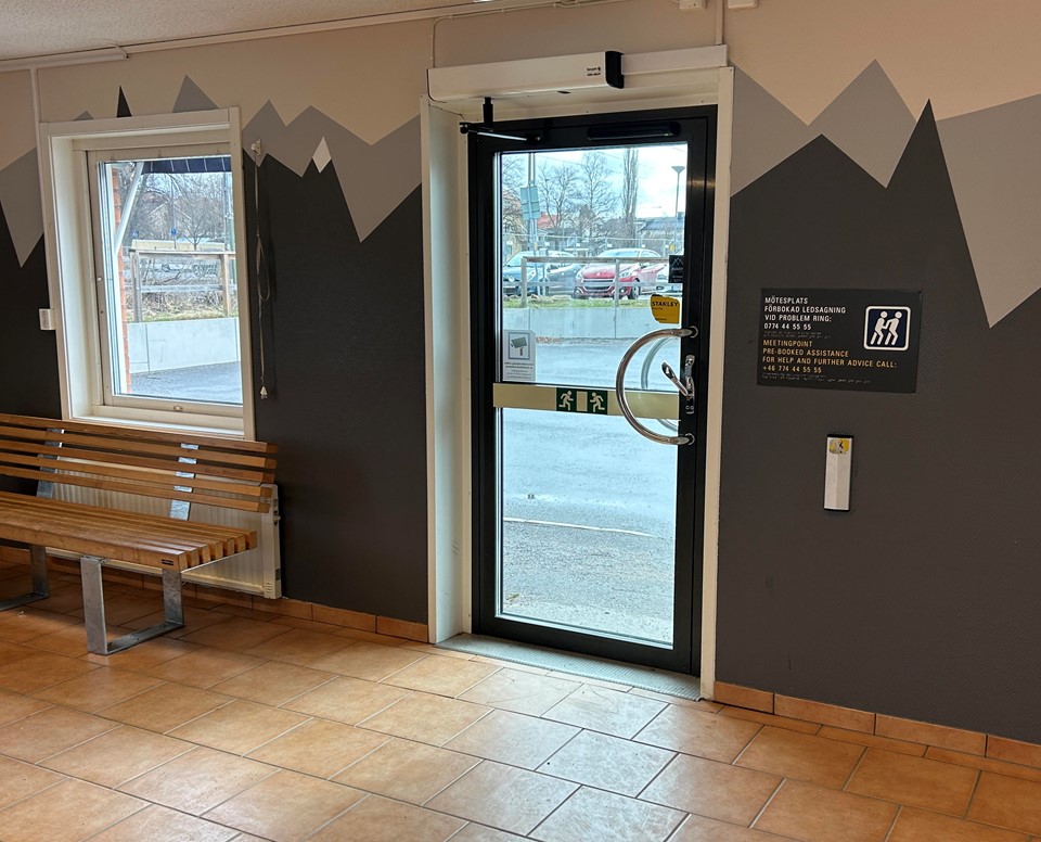 Inne. Direkt till vänster om ingången närmast taxiangöringen.