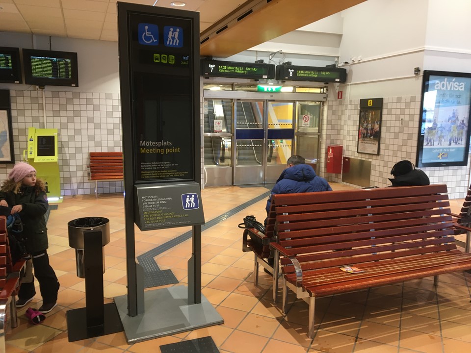 Ledsagning vid resa med SL: Ledsagaren ringer resenären ca en timme innan ledsagning och kommer överens om var man ska mötas.