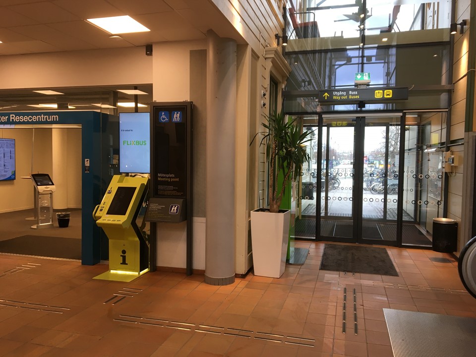 Väntsal. Till vänster om utgången mot busstationen nedanför rulltrapporna.